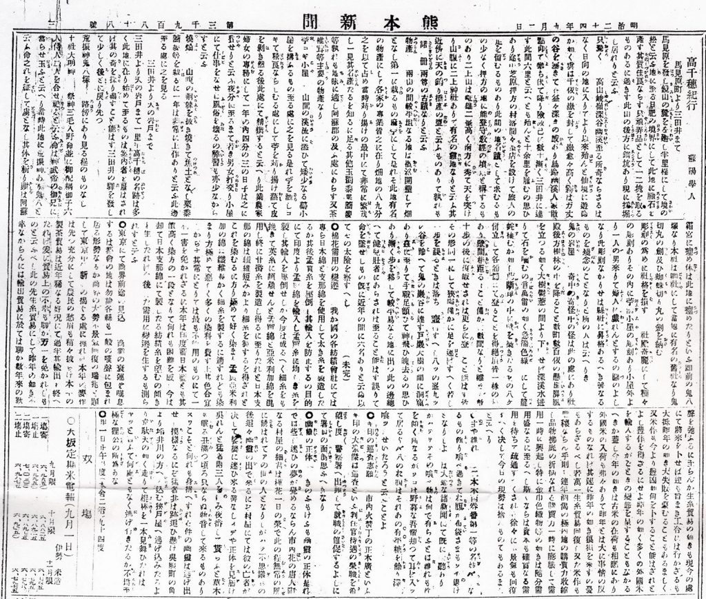 明治24年9月2日熊本新聞
